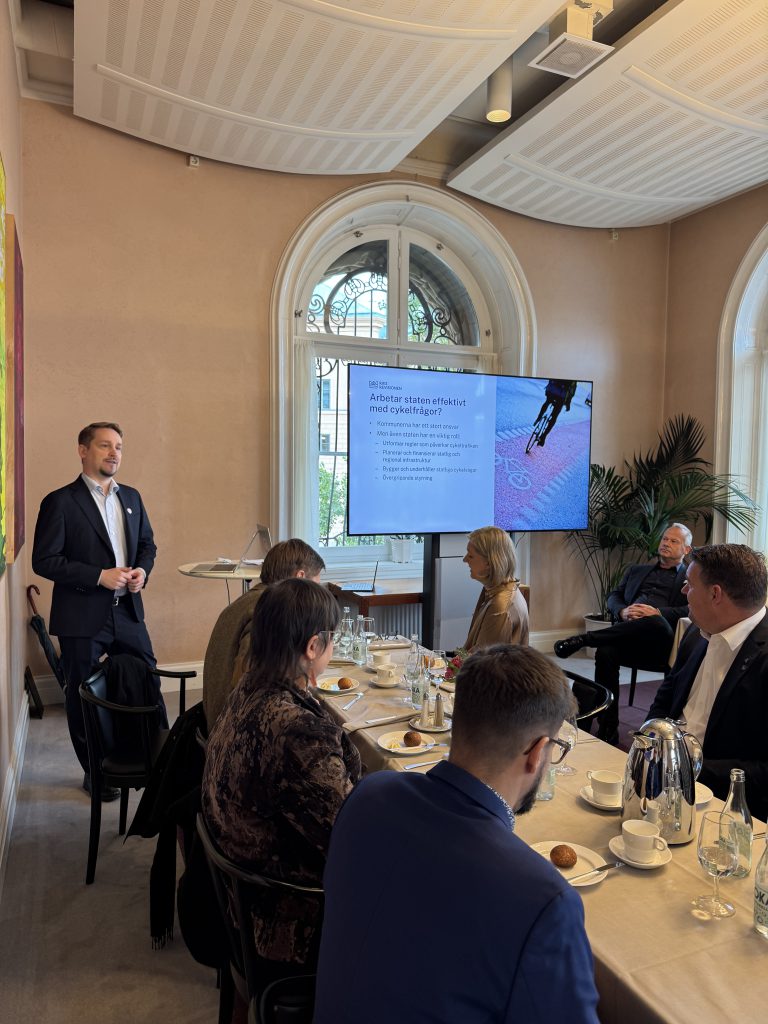 – Några saker jag tar med mig från diskussionen var samstämmighet kring behovet att minska byråkratin kring att bygga cykelbana vid statlig väg, särskilt när det behövs för att skapa sammanhängande pendelsträckor. Det framkom även att det behövs bättre metoder för att värdera nyttan av investera i cykel.