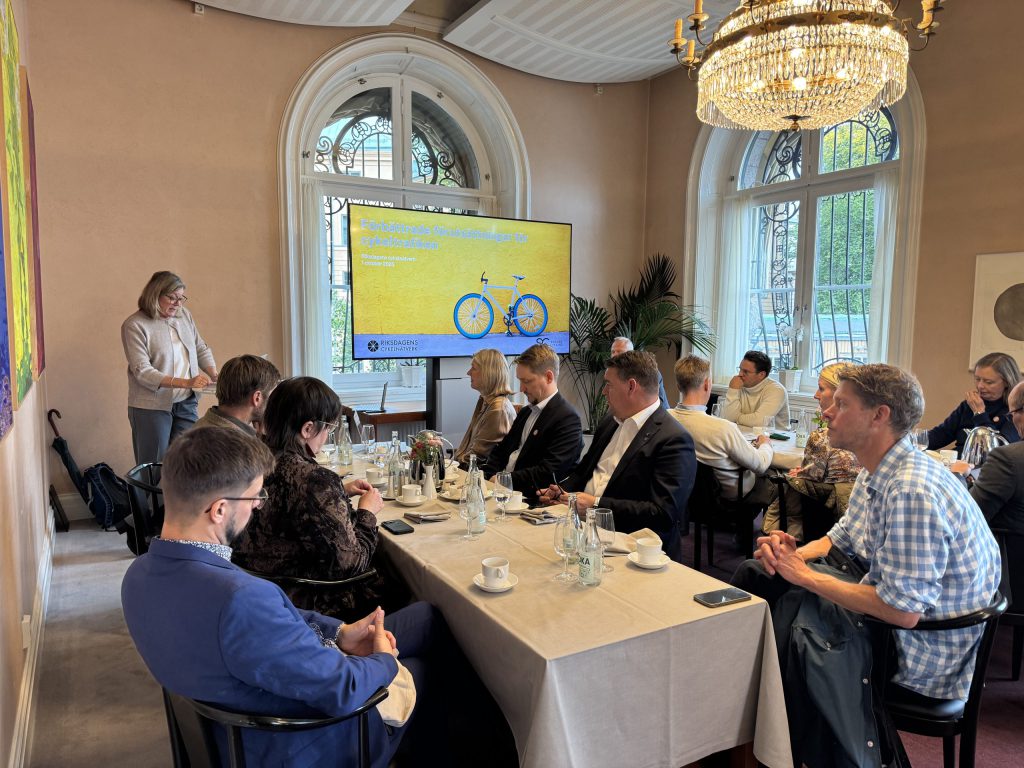 Riksrevisionens granskning visar stora brister i statens arbete med att främja cykling. Trots riksdagens mål om ökad cykeltrafik och färre olyckor går utvecklingen åt fel håll. Riksdagens cykelnätverk med Patrik Jönsson (SD) och Inga-Lill Sjöblom (S) i spetsen bjöd in till seminarum i riksdagen med representanter från Trafikverket och Transportstyrelsen som kommenterade kritiken och pekade på behovet av förenklade processer och bättre samverkan.
